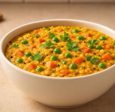 Low-oil vegetable upma or cracked wheat (dalia) preparation